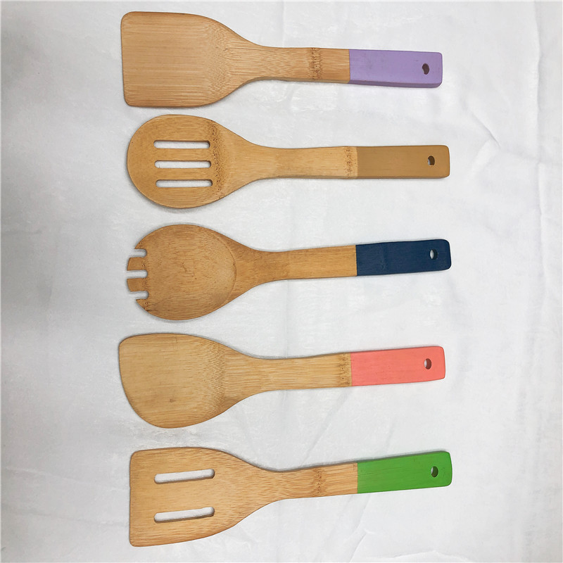 Color Handle Bamboo Shovel Bamboo Spoon Household Non-Stick Rice Shovel